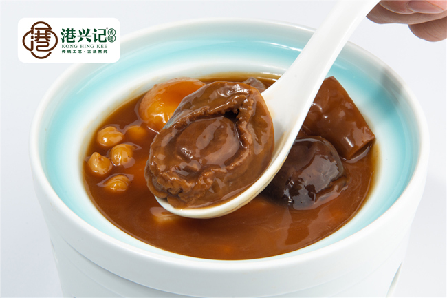 港興記采用上好的干鮑魚(yú),用精心熬燉的湯汁反復(fù)煨味,使干鮑魚(yú)能充分吸收其它材料的味道,達(dá)到香味濃郁、肉質(zhì)甘腴的滋味。